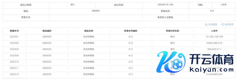 2024年1至10月,我国已从智利入口价值达到192.67亿元的车厘子,比旧年同期增长超26%。除了智利外,我国还从阿根廷、新西兰、澳大利亚等国度入口车厘子。