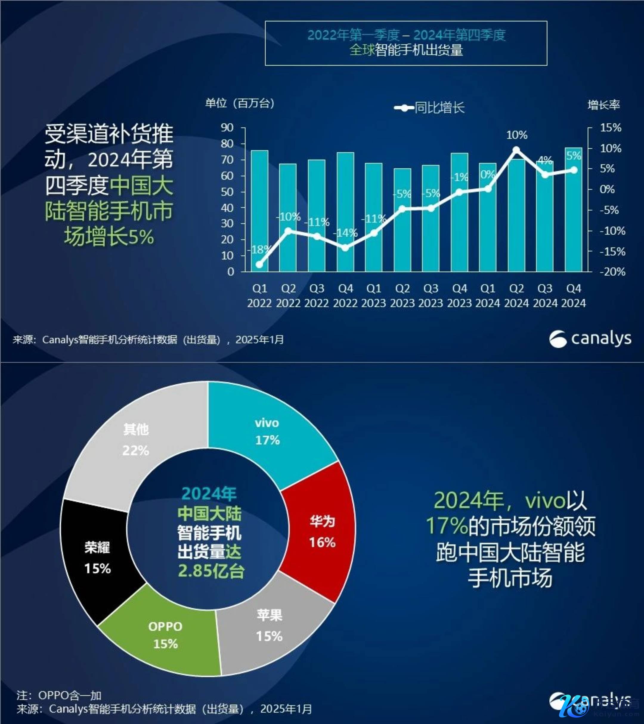 据机构先容,2024 年,中国大陆智妙手机市集全年出货量达 2.85 亿台,在两年的下降后奏凯迎来复苏,同比增长 4%。