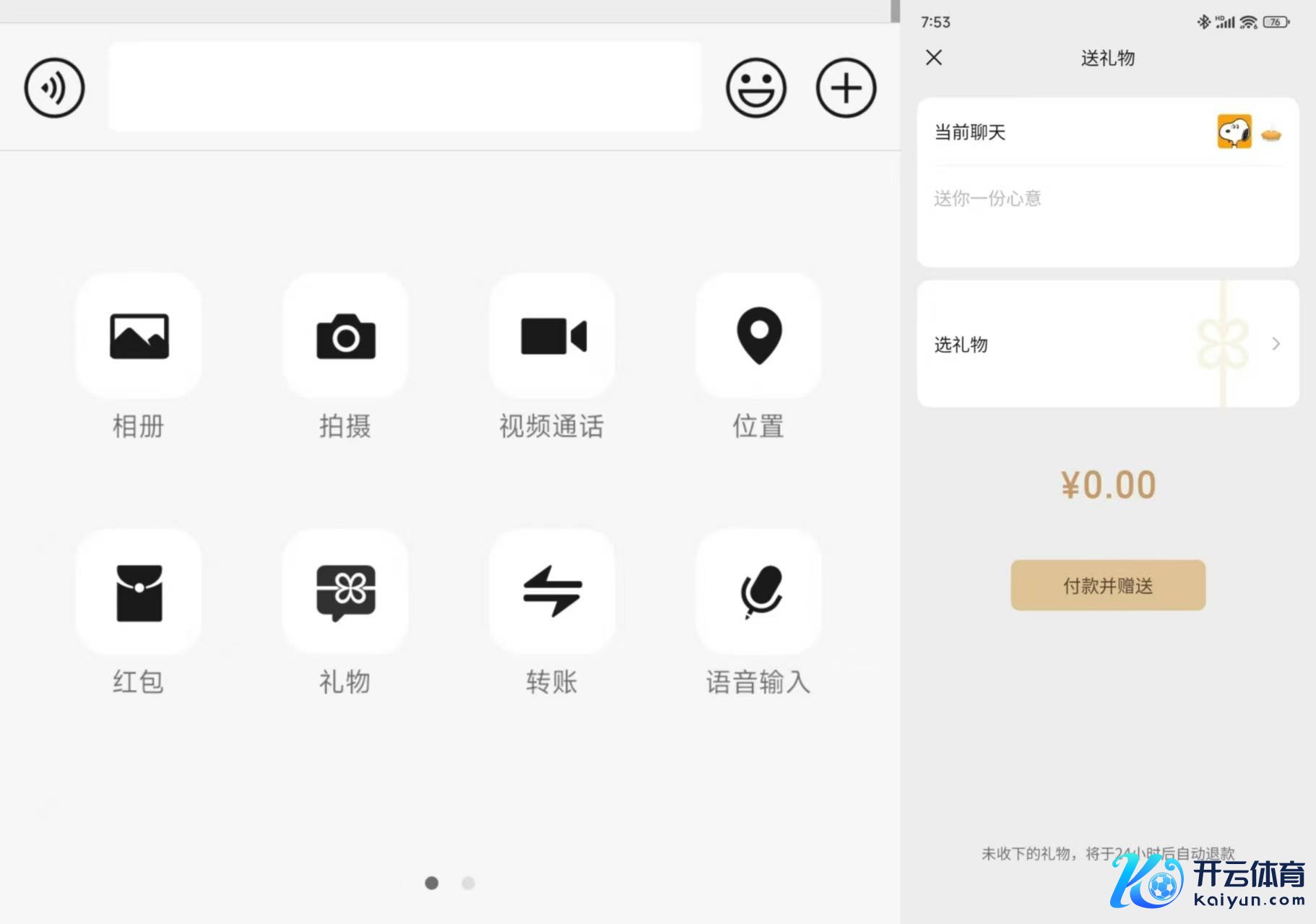 目下,用户仅需要在聊天窗口点击输入框右侧的「+」号,就不错在第一页功能列表中找到「耸峙物」功能。「耸峙物」界面与微信红包界面格调近似,可聘用营救对象帐号、营救祝颂以及营救的礼物本色,而况与微信红包一样在底部自满礼物金额。