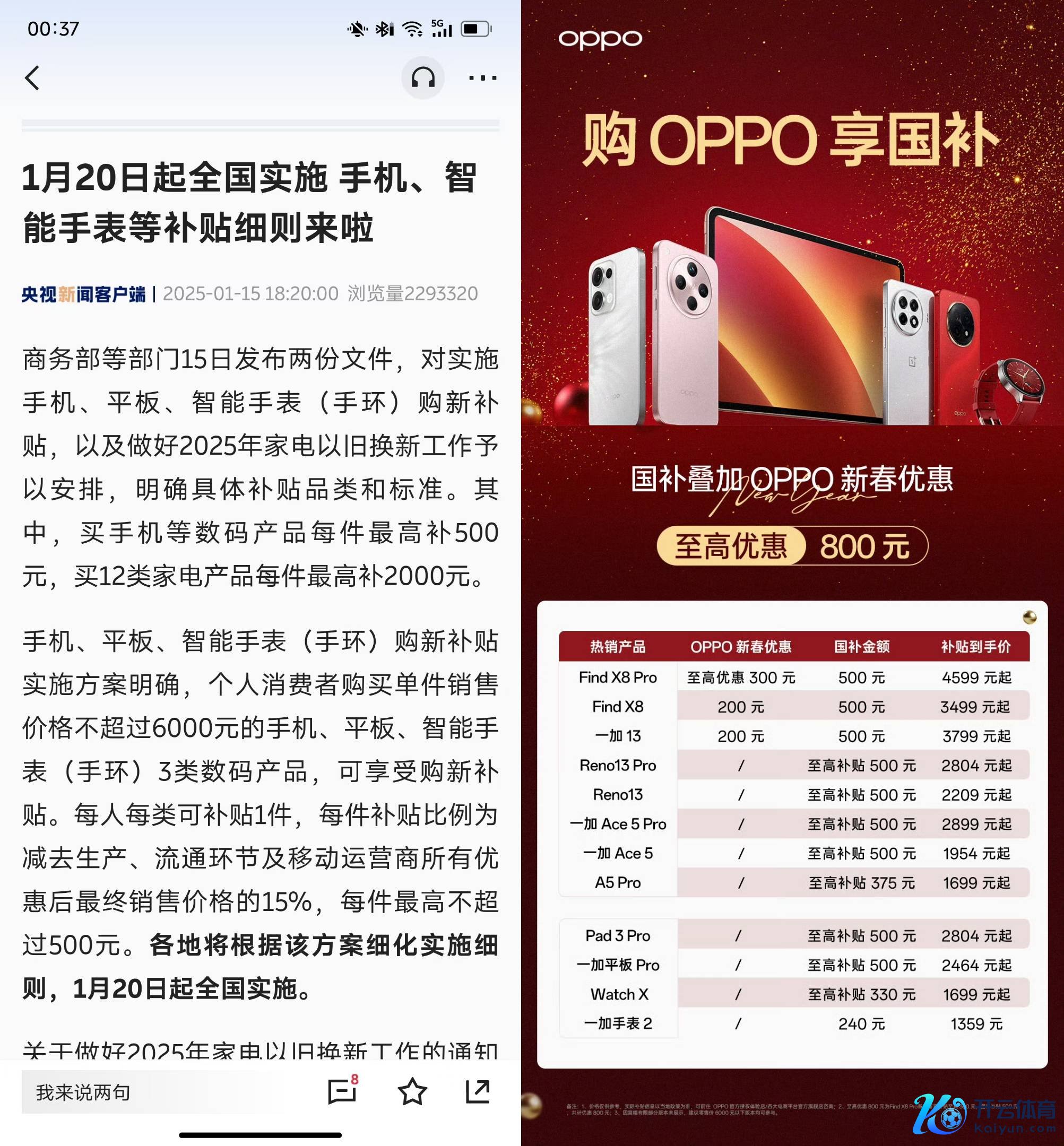 目下,OPPO 已公布了旗下产物的国补力度,而况 OPPO 本次补贴还将重叠 OPPO 新春优惠。据先容,1 月 20 号起,购买 Find X8 系列、一加 13 系列,使用国补重叠新春优惠,至高优惠 800 元。