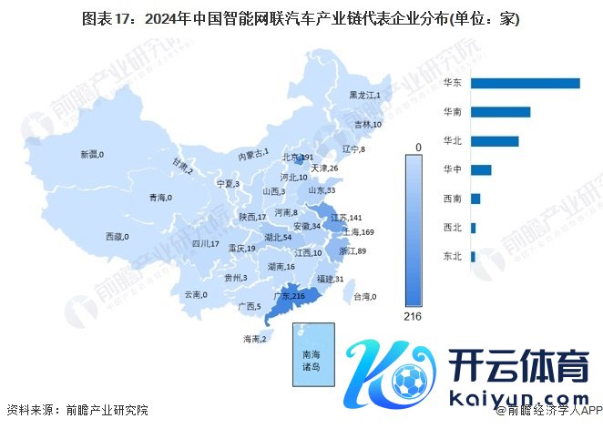凭据前瞻产业计划院自研大数据系统的智能网联汽车产业链要点企业查询数据骄慢,截止2024年1月10日,中国智能网联汽车代表企业主要漫衍在华东、华南、华北等地,其中广东、北京、上海漫衍的智能网联汽车产业链代表企业数目最多。