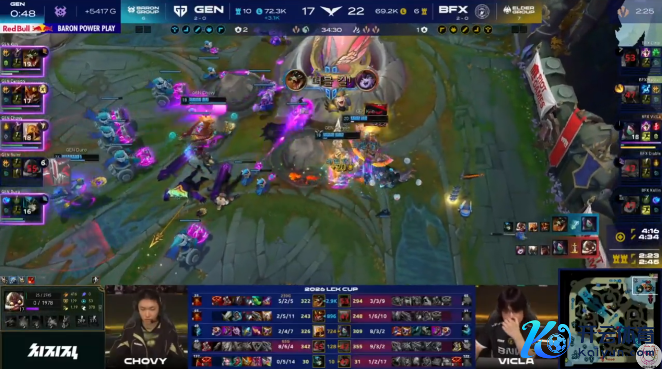 Chovy的景象区大刷子瑞兹,Ruler则是要帮烬拿下赛季寰球首胜。阅历了第一局之后,中路平直被碾压,Chovy接近超神0死横扫了BFX。