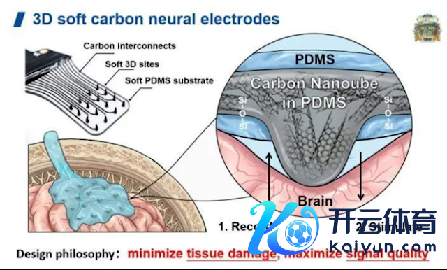 该团队见效研发出一种三维锥形碳基软性大脑皮层电极阵列,其选拔高柔韧性的碳基材料与三维锥形结构蓄意,可雅致贴合大脑名义。