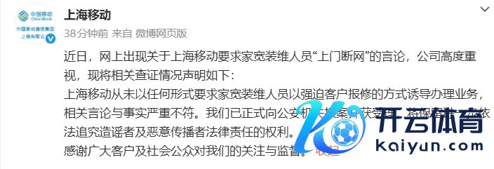 为创收贬抑职工上门断网?上海移动恢复:与事实严重不符,已报案为创收贬抑职工上门断网?上海移动恢复:与事实严重不符,已报案